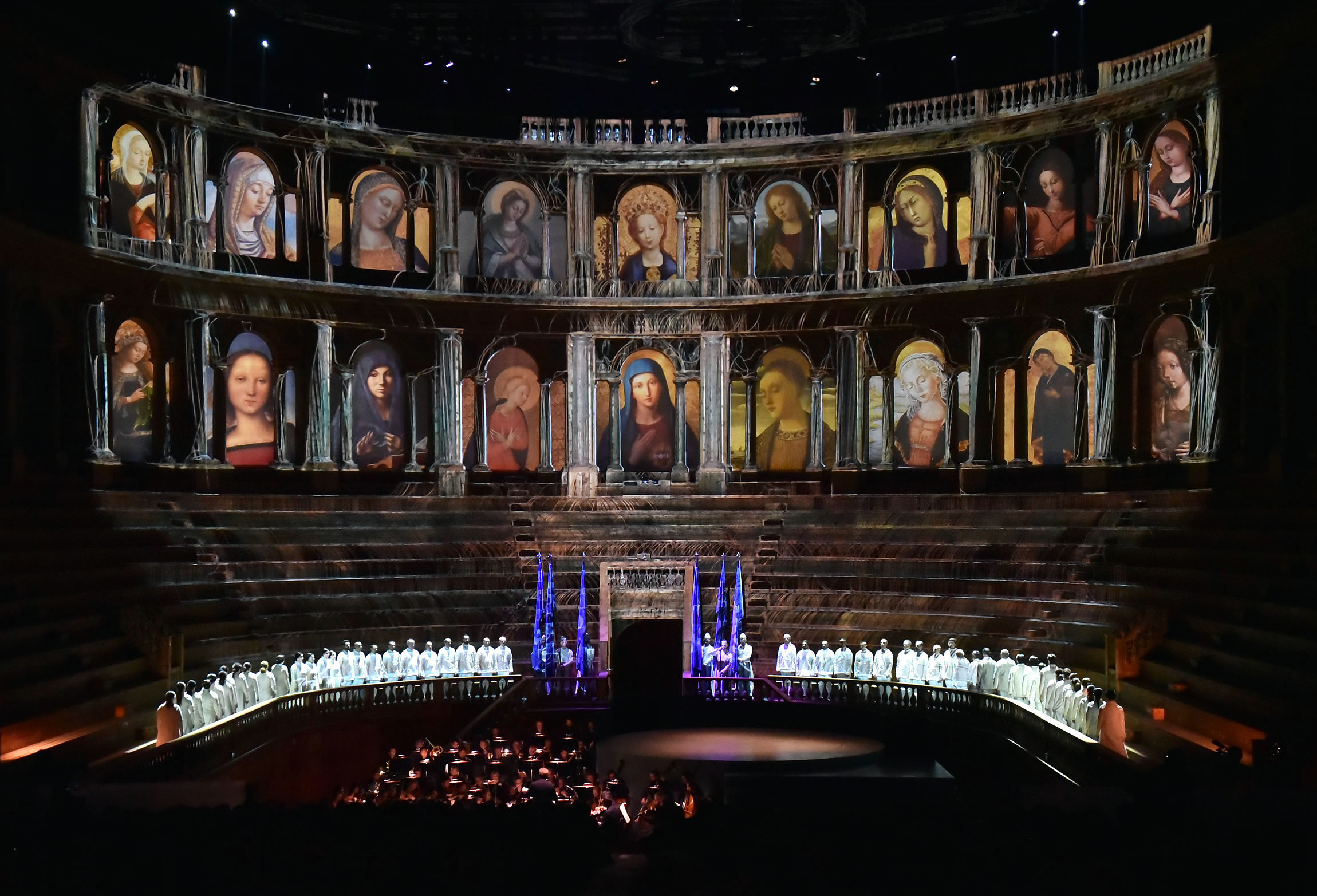 Jérusalem (in programma il 28 aprile 2020, ore 20.00 e disponibile fino alle ore 24.00 del 29 aprile 2020), primo grand opéra verdiano, ha inaugurato il Festival Verdi 2017 nell’allestimento di Hugo de Ana, che ne firma regia, scene, costumi, con le luci di Valerio Alfieri e le coreografie di Leda Lojodice. Sul podio della Filarmonica Arturo Toscanini e del Coro del Teatro Regio di Parma preparato da Martino Faggiani, Daniele Callegari ha diretto la partitura nell’edizione critica a cura di Jürgen Selk, eseguita allora in prima assoluta. Interpreti Ramón Vargas (Gaston), Pablo Gálvez (Le comte de Toulouse), Michele Pertusi (Roger), Annick Massis (Hélène), Valentina Boi (Isaure), Deyan Vatchkov (Adhémar de Monteil), Paolo Antognetti (Raymond), Massimiliano Catellani (L’émir de Ramla), Matteo Roma (Un officier de l’émir), Francesco Salvadori (Un hérauld, Un soldat).