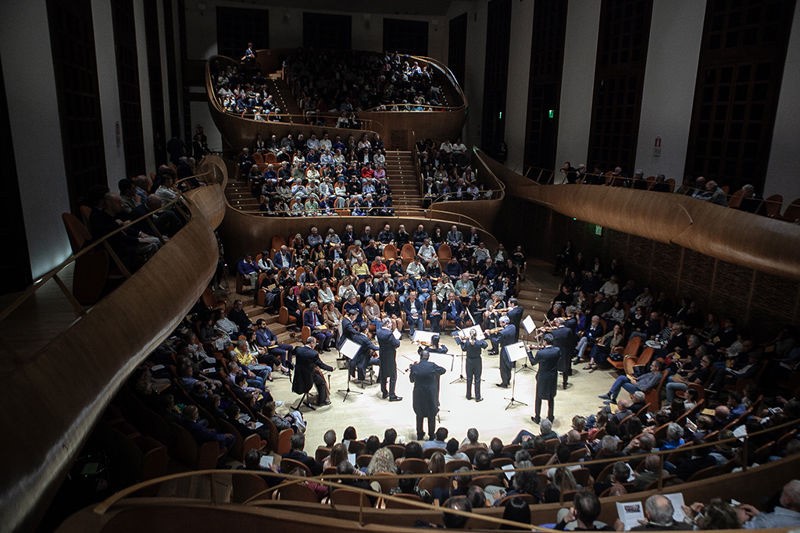 Il viaggio proseguiva, con ben altra temperatura, facendo tappa nel salotto di un Mendelssohn ancora adolescente ma già capace di progettare, con una naturalezza che solo Mozart aveva saputo eguagliare, architetture poderose e al tempo leggere, vaporose e svettanti nella loro ardita verticalità. La Sinfonia in si minore n°10, nelle mani dei Berliner, trovava ad esaltarla l’argento vivo della sua natura, il finissimo ricamo di frasi lavorate in filigrana, in un gioco in cui ogni azzardo era apparente. Bastava questa manciata di musicisti a far arrivare, nella terra dei violini e del torrone, il profumo del suo sontuoso battaglione al completo. L’oro degli ottoni, il folleggiante brusio dei fiati. Una luce che si irradiava, splendida, sulla superficie della Serenata per archi op.48 di Čajkovskij, traducendone al millesimo la dolce curva delle linee, l’aristocratica eleganza. Un cristallo perfetto, irradiato di spavalda positività, di solare certezza nel quale solo a tratti occhieggiavano, struggenti e rivelatrici, le ombre di quell’estenuata, dolceamara nostalgia di un mondo che avverte la propria fine e che, su quell’orlo tra rimpianto e desiderio, non smette di volteggiare accennando un valzer in controluce, danzato solo col pensiero. Applausi scroscianti. Prossimo appuntamento, il 13 ottobre con un trio di eccellenze: Capucon, Soltani e Fujita.