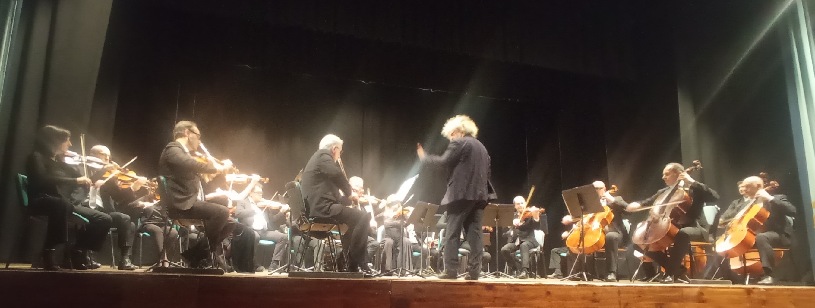 Il concerto è proseguito con la "Sinfonia concertante per violino, viola e orchestra in Mi bemolle maggiore K 364". Una composizione di Wolfgang Amadeus Mozart scritta nel 1779 in un periodo di grande difficoltà in seguito alla morte della madre e al forzato rientro a Salisburgo, composta da tre movimenti: Allegro maestoso (4/4, Mi bemolle maggiore), Andante (3/4, do minore) e Presto (2/4, Mi bemolle maggiore). La sinfonia concertante ci regala grandi emozioni (in modo particolare nel sublime Andante) sia per la carismatica direzione orchestrale affidata al fantasioso violista Danilo Rossi, sia per la presenza sul palco del giovane violinista Ulisse Mazzon, già vincitore di prestigiosi premi, tra cui il Postacchini 2025. Occorre spendere parole di elogio per questo giovane interprete che suona uno strumento realizzato in Italia in tempi recenti, eppure capace di un suono assai lontano dai violini di moderna costruzione. Il suo Mozart è preciso, lucente, profondo ed ispirato. Il "dialogo" con la viola del maestro Rossi é quanto mai equilibrato e assolutamente ben tessuto. Mazzon é un talento sicuramente da seguire, una bella scoperta che la Form ha donato al pubblico.