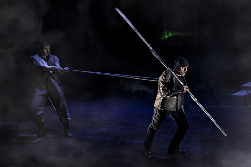 «Le nozze di Cadmo e Armonia, il libro di Roberto Calasso, porta in epigrafe una frase di Sallustio: queste storie non avvennero mai, ma sono sempre – commenta Gabriele Vacis che firma la regia dello spettacolo – Quel bellissimo libro di Calasso raccontava il rapporto tra gli dei e gli uomini. Gli dei, nella Grecia classica, erano personaggi della vita quotidiana. Con tutti i pregi e i difetti degli umani. Non è facile, per noi moderni, comprendere questa consuetudine con le divinità. […] E noi? Adesso? Oggi dove sono gli dei? Dov’è Dio? La risposta esatta che si doveva dare al catechismo non contraddice quello che voglio dirvi: dov’è Dio? In cielo, in terra e in ogni luogo. Quando Paolini ha cominciato a parlarmi di questo spettacolo mi ha chiesto di leggere Homo deus di Yuval Noah Harari. Lì si trova una risposta che non contraddice quella del catechismo: adesso gli dei siamo noi. Siamo noi occidentali ricchi che facciamo i temporali e abitiamo in chiese preziosissime: New York, Parigi, ma anche Dubai o Seul… Siamo noi che, discrezionalmente, senza bisogno di motivi razionali, decidiamo dove devono stare gli umani e come devono starci. Il libro di Calasso è importante perché racconta l’ultima volta in cui gli umani e gli dei si sono seduti, insieme, allo stesso banchetto. Poi sono cominciati i muri. Da una parte gli dei, dall’altra gli uomini. E in mezzo c’è Ulisse, un uomo che ha un rapporto privilegiato con gli dei grazie alla sua intelligenza, alla sua arguzia. L’Ulisse che vorremmo raccontare è quello che ha già vissuto tutte le sue peripezie, è un vecchio di oggi: ancora molto in gamba, consapevole ma senza futili illusioni. È un saggio confuso e disorientato che ha bisogno di continuare a comprendere, nonostante tutto. È un Ulisse che, finalmente, prova ad ascoltare sua moglie, suo figlio, che prova a comprendere persino gli dei capricciosi che si sono giocati il suo destino. Per questo, in scena, Marco non sarà solo. Sartre diceva che l’inferno sono gli altri. Questo anziano Ulisse ha bisogno di comprendere quell’inferno che sono gli altri.»