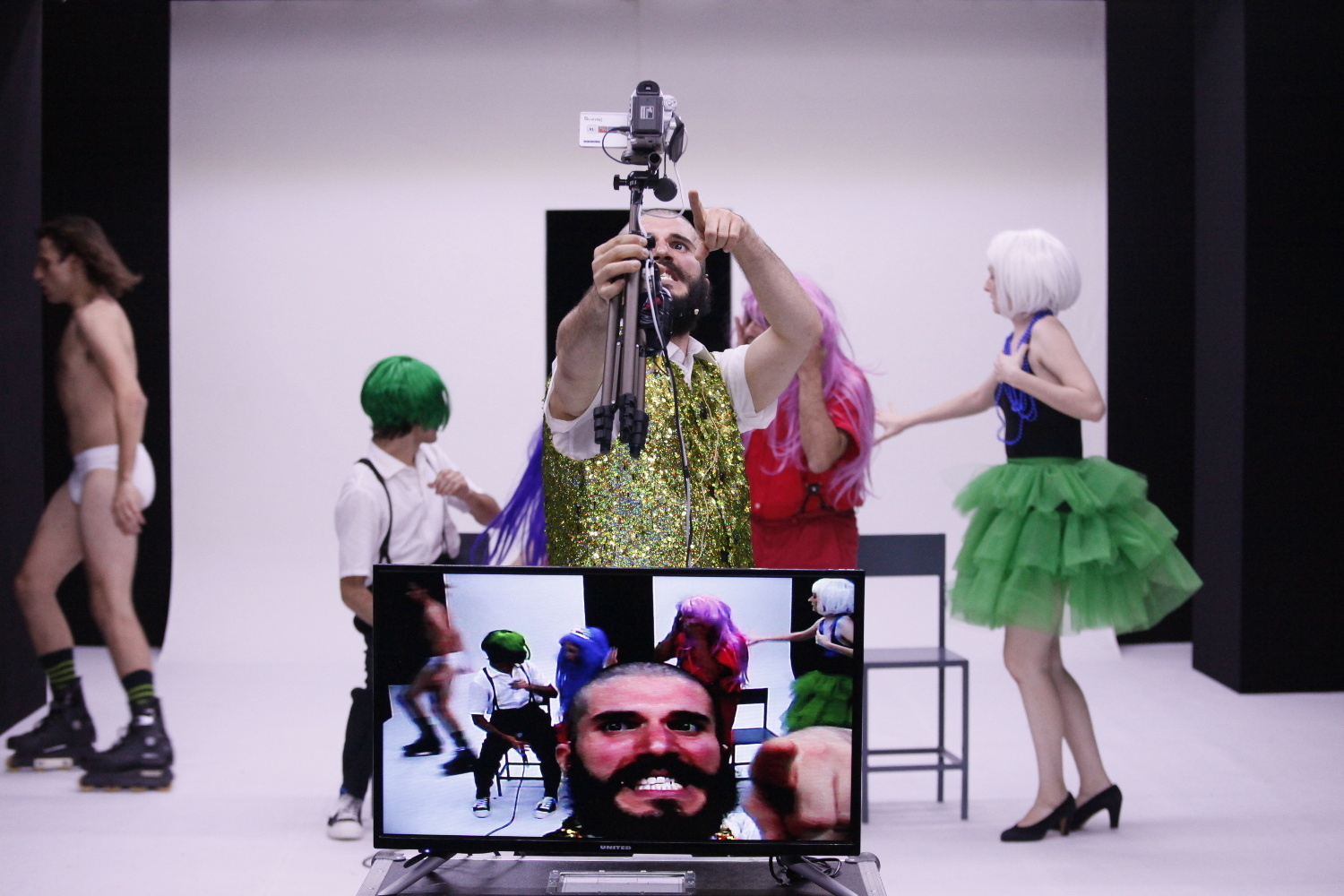 È un testo divertente, assurdo, violento e politico sulla ricerca della felicità. Inevitabile rimanere sedotti e spiazzati dalla comicità e dal paradosso di un’umanità incastrata nella sua stessa esistenza. Sul palco si alternano una selezione delle 26 mini-pièce che compongono il testo originale con songs philosophique dal sapore brechtiano, piccoli balletti e alcune video-pantomime.
