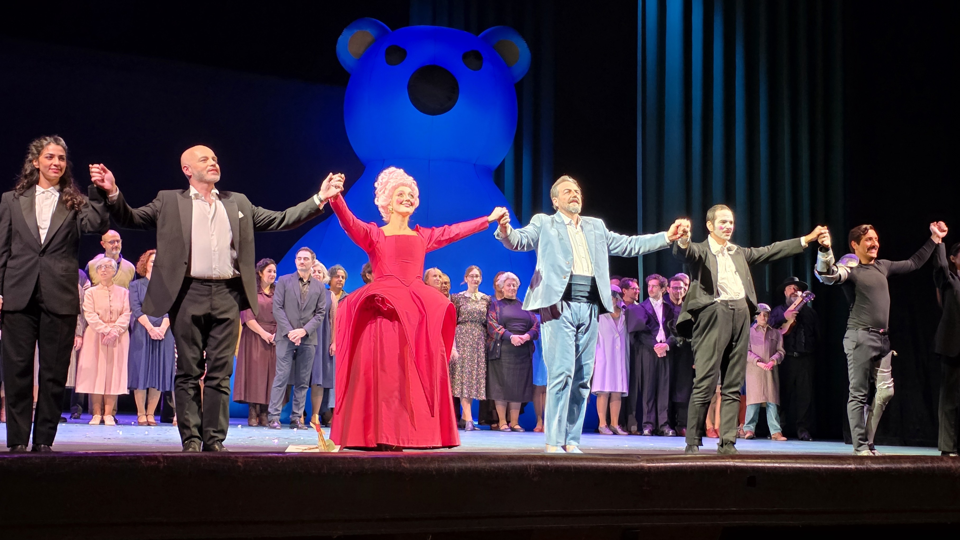 Non mancano i palloncini rossi, pupazzi gonfiabili, letti d’ospedale, un pianoforte e così via. Alcune scene sono azzeccate, ma nel complesso prevale la confusione, l’eccesso simbolico, la sovrastruttura cerebrale. A tratti il regista sembra cadere nella tentazione di supplire alle mancanze del coro, poco espressivo anche se comodamente seduto, e dei cantanti, abbastanza spaesati, cadendo nel tranello opposto: l’eccesso.