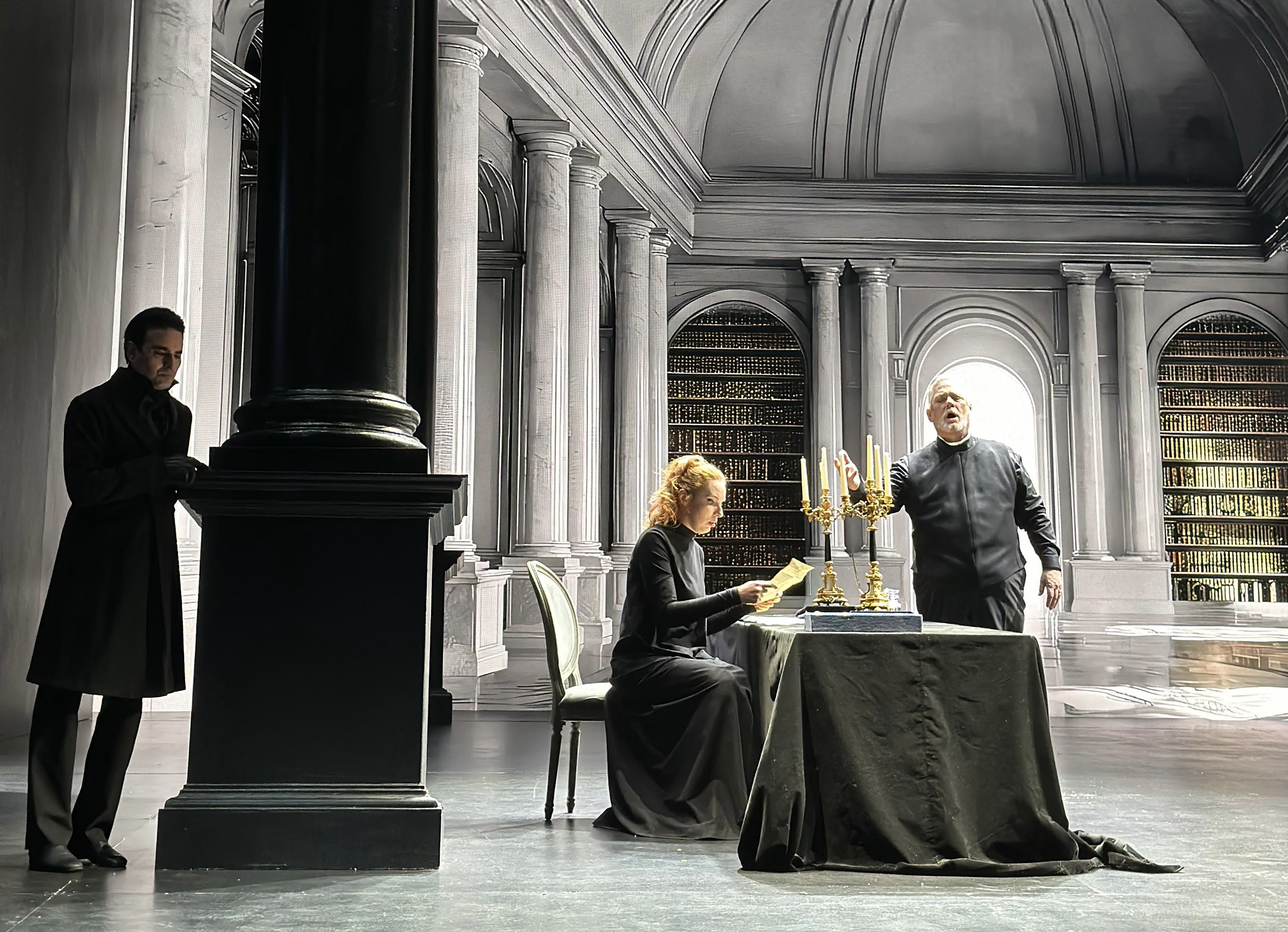 Sul piano vocale, Gregory Kunde ha affrontato il ruolo titolo con l’intelligenza e l’autorevolezza del grande interprete. A dispetto dell’età, il legato rimane esemplare, la gestione della frase di bella eleganza, il controllo dei volumi sempre funzionale alla parola e al senso del dramma; qualche fisiologico allargamento nel passaggio tra zona grave e zona acuta non ha intaccato una prova complessivamente svettante, sostenuta da carisma scenico e da una profonda adesione al tormento del personaggio, culminante nel magnifico discorso finale di fronte all’assemblea, autentico fulcro etico dell’opera. Accanto a lui, la Lina di Lidia Fridman si è imposta fin dal primo apparire per nobiltà d’accento e intensa introspezione. La voce, scura e vellutata, ha restituito con coerenza il travaglio interiore del personaggio, disegnando una figura raccolta e dolente, mai esibita, capace di farsi autentico centro emotivo della vicenda. Vladimir Stoyanov ha offerto uno Stankar di grande spessore, capace di dosare con consumato mestiere furore e leggerezza.